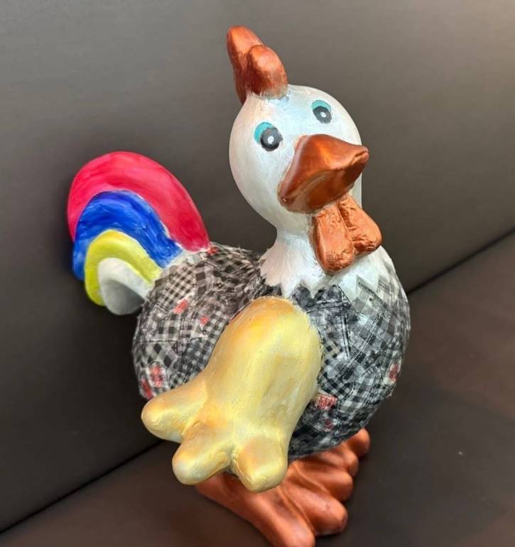 We gaan bij Jolo's dierenbeelden beschilderen. Er zijn verschillende voorbeelden beschikbaar (eend, kat, giraf, kip, etc.).
